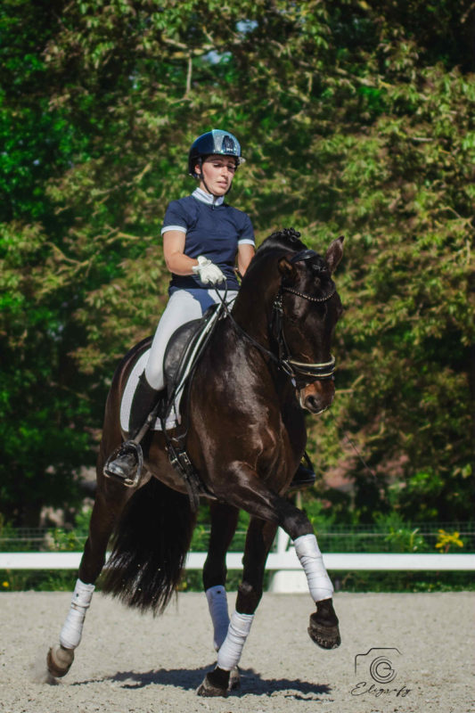Avec Antares, tout est clair : il a été travaillé et présenté dès l’âge de 4 ans, et il évolue avec un mental rare, toujours généreux, respectueux, concentré, même sous pression. Il accepte l’exigence avec calme, sans se tendre ni fuir les demandes, ce qui en fait un cheval fiable, zen et agréable à travailler au quotidien. C’est dans le travail, sur le carré comme à la maison, qu’il exprime le mieux toutes ses qualités — et c’est ce que nous voulons transmettre à travers lui : des chevaux faits pour le sport, prêts à collaborer, pas uniquement pour l’image.