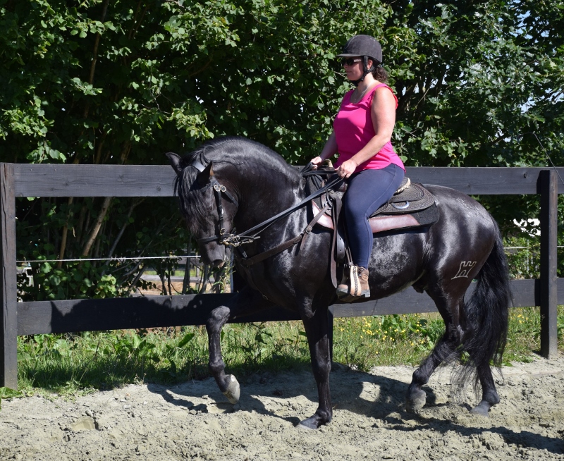 Il est très doué en dressage (piaffé, passage, début de la pirouette) et pour le spectacle. Nous le valorisons dans ce sens.
